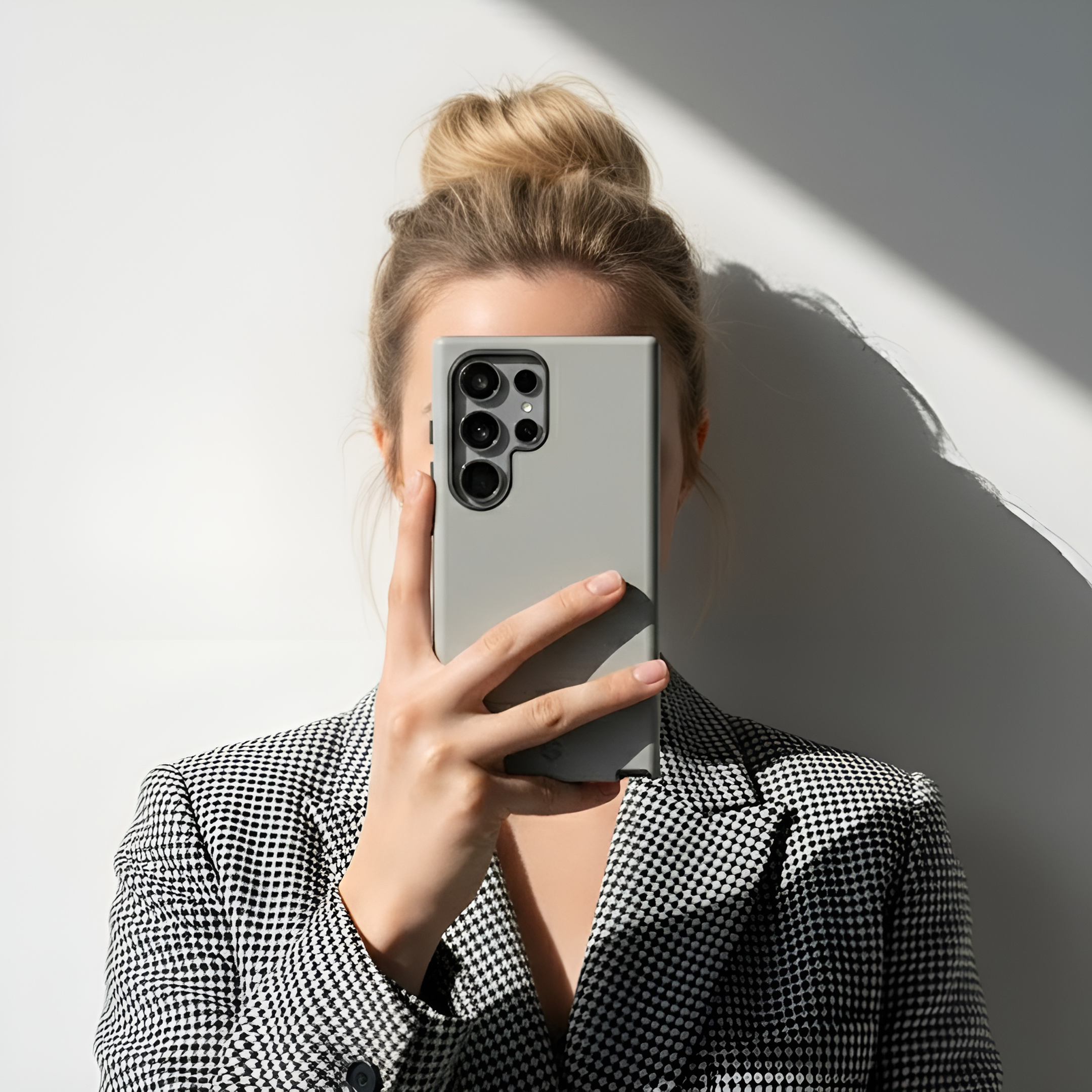 The Stormy Grey Phone Case offers a palette of cool and contemporary shades, from deep charcoal and slate to soft dove grey. Available for the Samsung Galaxy S24 series, these cases are designed with a dual-layered construction featuring a shock-absorbing soft TPU inner core and a robust polycarbonate outer shell. Available in shades of grey that add a touch of understated sophistication and simplicity, the Stormy Grey case provides sleek, modern protection for your phone.