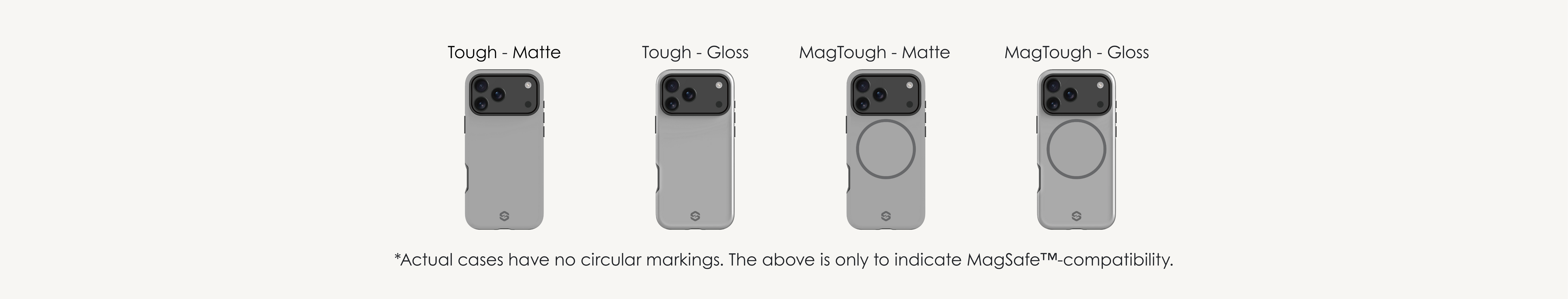 We also offer MagTough (MagSafe-compatible) options for supported iPhone models with the same level of protection. Both case types are available in both finishes – just pick what you prefer.